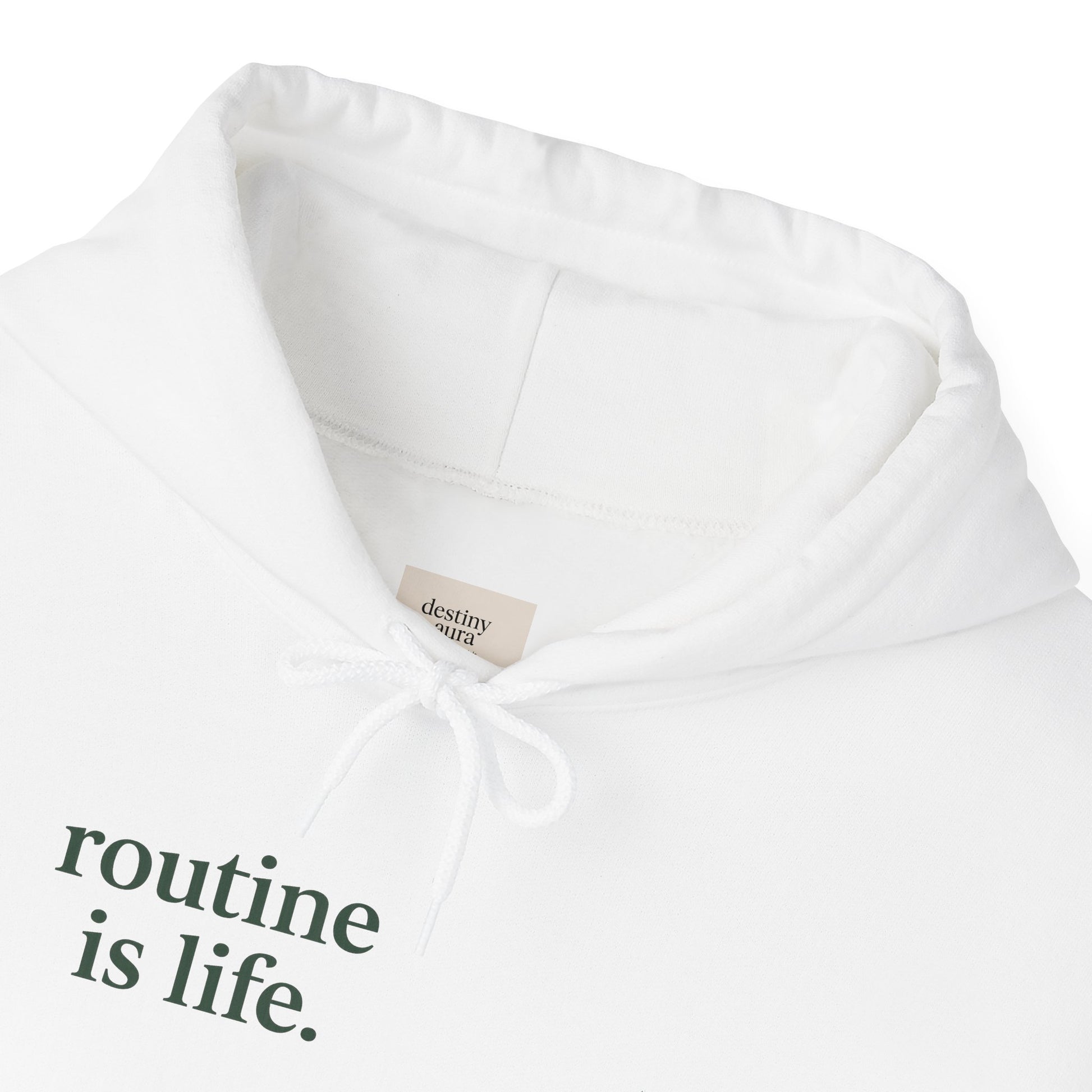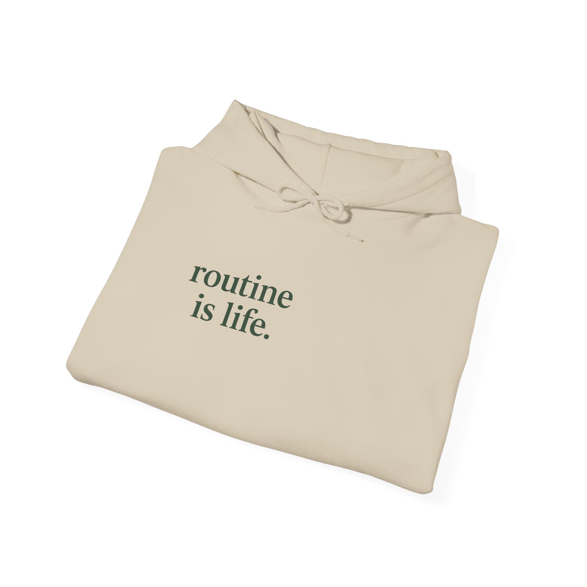 Routine is Life 후드티로 차분한 편안함과 시대를 초월한 스타일을 느껴보세요.